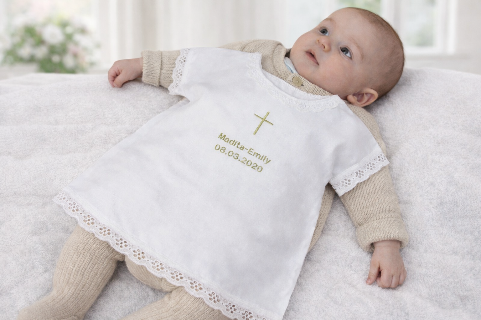 Entdecken Sie unsere exquisite Kollektion an handgefertigter Taufkleidung, die speziell für den besonderen Tag Ihres Kindes entworfen wurde.